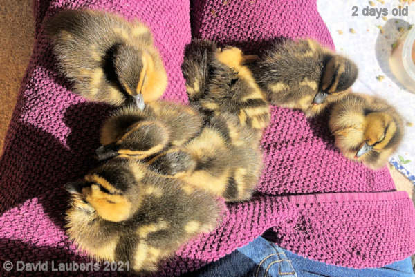 Duckling as his sun lamp sets 9:51pm 25th April 2021